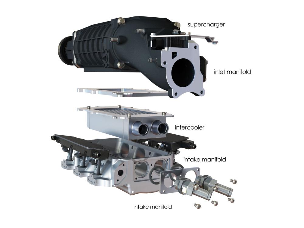 The intercooler nests inside the intake manifold, and does not affect the height of the supercharger.