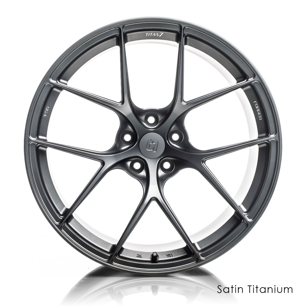 Pressurized with 10,000 TONS of industry-leading pressure to give you a wheel that is incredibly strong while giving you all of the performance attributes you need in a track-focused wheel. Upon close inspection, you will notice strength adding ridges which have been strategically placed to give the wheel rigidity while keeping weight to a minimum. The split 5-spoke design was chosen for its motorsports heritage and track-worthy structure. Each wheel from Titan 7 features traction-improving bead seat knurling, beefed-up inner rim flange for durability and strength, and logo-machined accents. The T-S5 is designed for each application to clear all popular aftermarket big brake kits while achieving maximum concavity. All wheels are durability tested according to JWL standards to ensure safety while you perform. Authentic performance from Titan 7. Forged for All.